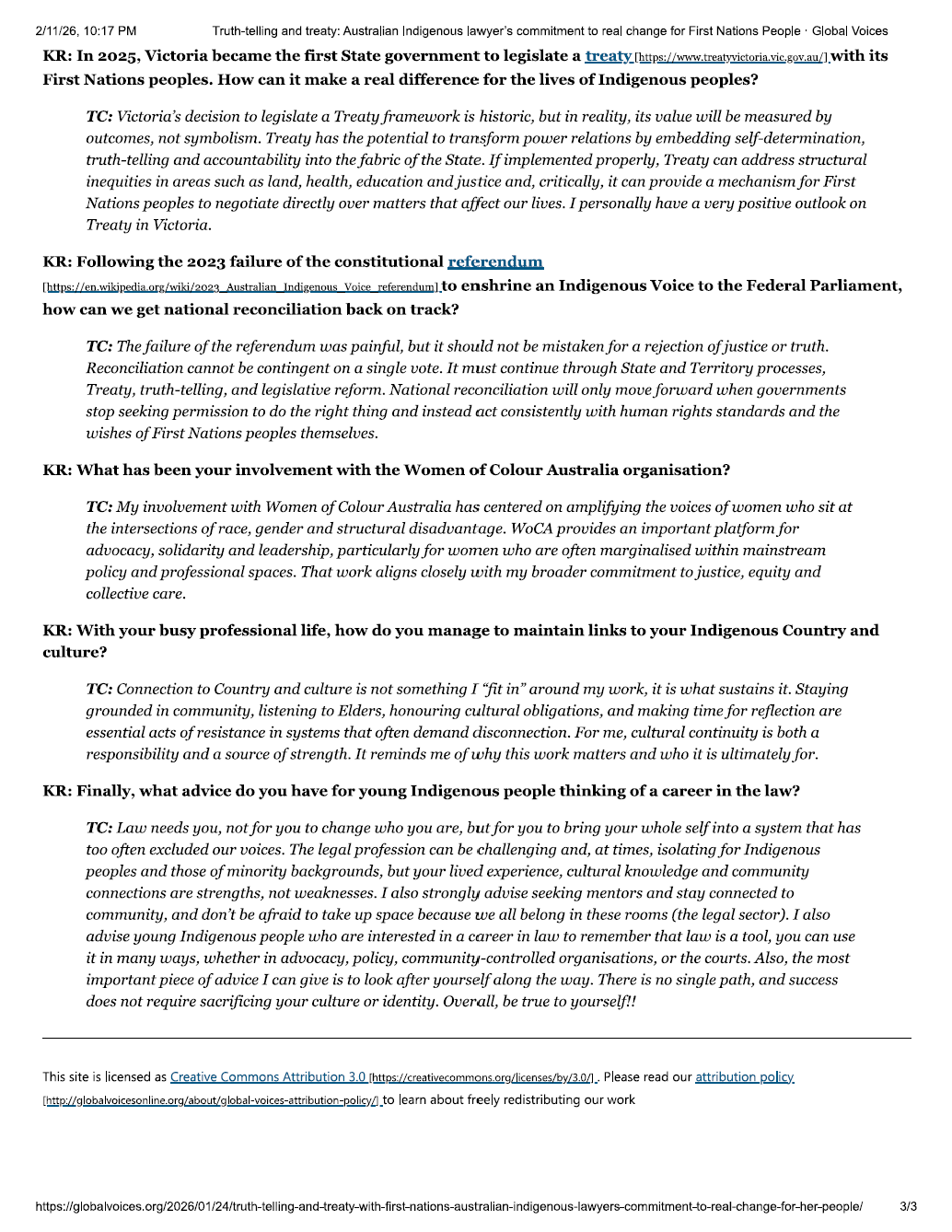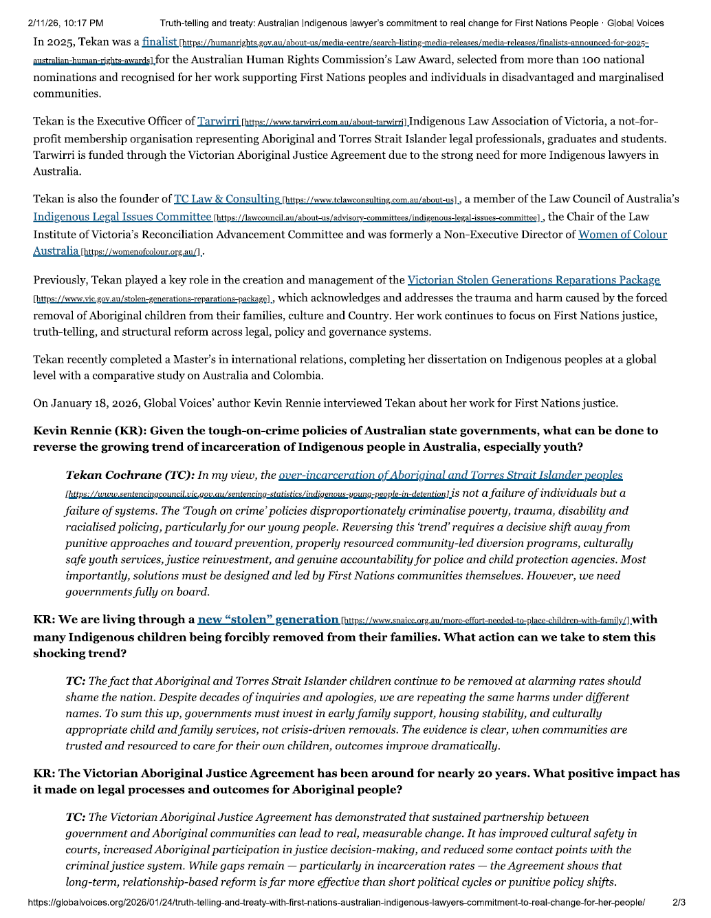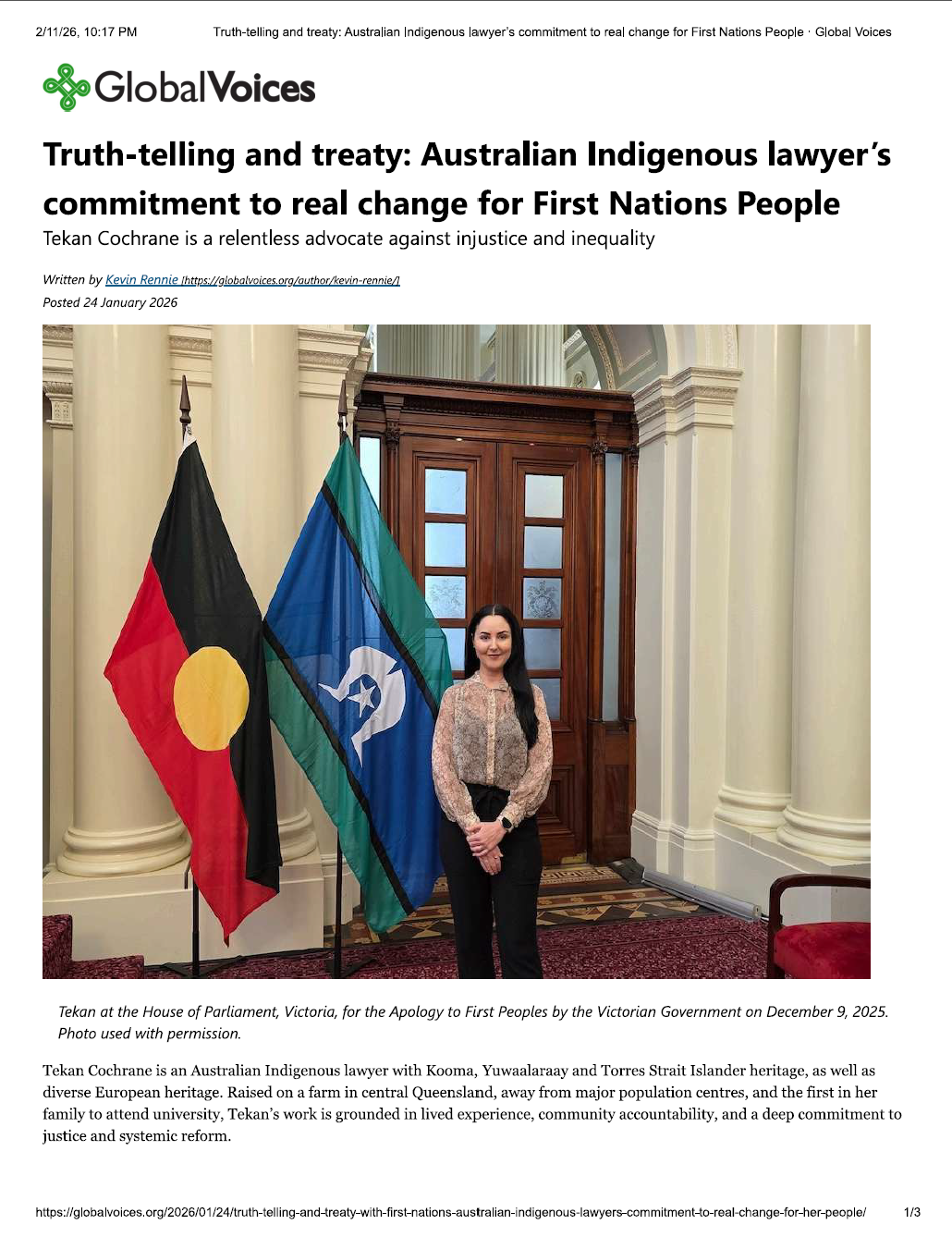 Truth-telling and treaty: Australian Indigenous lawyer’s commitment to real change for First Nations People 24 Jan Written By Tekan Cochrane View fullsize View fullsize View fullsize Go to article on GlobalVoices Tekan Cochrane